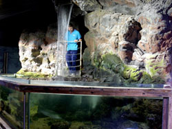 This zone gives a glimpse of the wide variety of habitats found around our own coasts and the fish that live within them. See the starfish, colourful anemones, the resilient swimming crabs as they battle against the crashing waves. Walk behind our waterfall where Sea bass swim below amongst the caves.